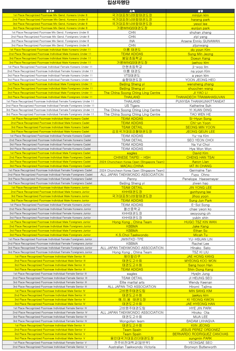 0 (Gangwon-Chuncheon 2025 World Taekwondo Cultural Festival Open Championships)