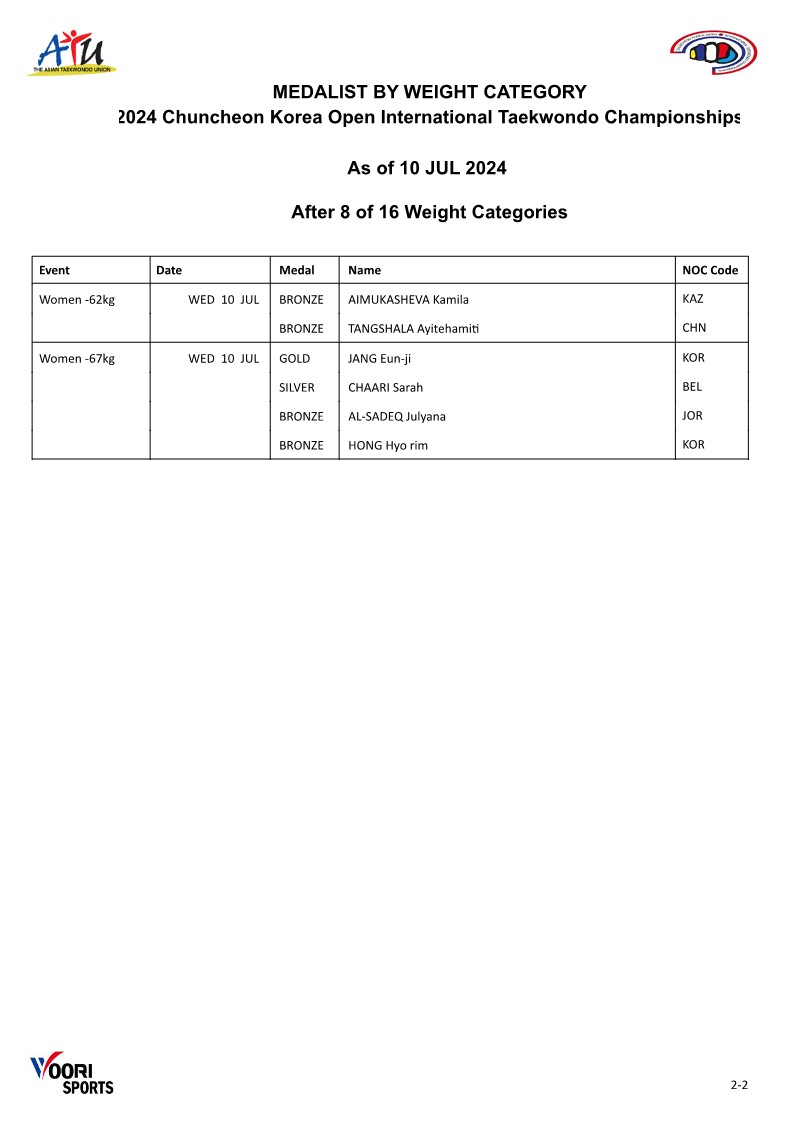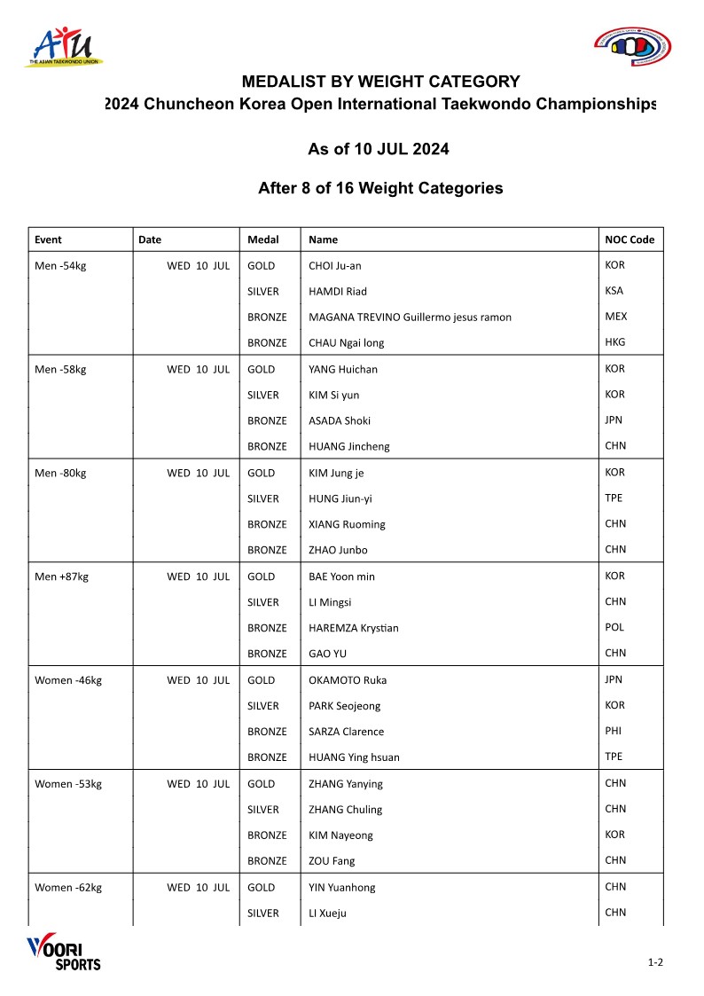 [Day-1 Medallist by Weight Category] 2024 Chuncheon Korea Open International Taekwondo Championships.pdf